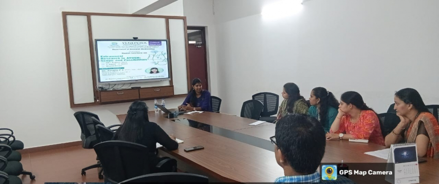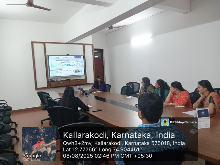 The Department of Nutrition and Dietetics, Yenepoya Naturopathy and Yogic Science College & Hospital (YNYSCH), organized an engaging guest lecture on "Extramural Research in AYUSH: Scope and Possibilities" delivered by Dr. Swathi P. S, Research Officer, Central Research Institute in Yoga and Naturopathy (CRIYN), Nagamangala, Mandya.